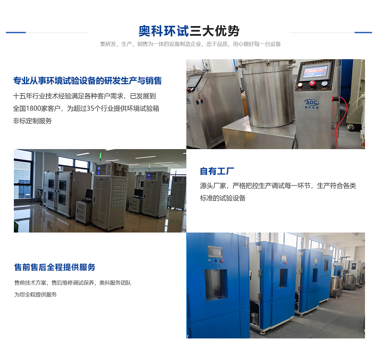 安徽奧科試驗(yàn)設(shè)備有限公司隸屬于杭州奧科環(huán)境試驗(yàn)設(shè)備有限公司直屬分公司,是一家從事各種試驗(yàn)設(shè)備研發(fā)、生產(chǎn)與銷(xiāo)售一體的技術(shù)單位??偣緭碛袕?qiáng)大的技術(shù)團(tuán)隊(duì)及科學(xué)嚴(yán)謹(jǐn)?shù)纳a(chǎn)流程,鑄就了產(chǎn)品質(zhì)量。公司本著“以質(zhì)量求生存,以信譽(yù)求發(fā)展”的原則,為科研、軍事、航空、電子、汽車(chē)、石油、化工、醫(yī)療、通訊等各大院校和企事業(yè)單位提供符合GB、GJB、IEO、ISO、ASTM、MIL、DIN等標(biāo)準(zhǔn)的各類(lèi)環(huán)境試驗(yàn)設(shè)備,并可根據(jù)用戶(hù)的需求設(shè)計(jì)制造各類(lèi)非標(biāo)性設(shè)備。奧科奉行“進(jìn)取求實(shí)嚴(yán)謹(jǐn)團(tuán)結(jié)”的方針,不斷開(kāi)拓創(chuàng)新,以技術(shù)為核心、視質(zhì)量為生命、奉用戶(hù)為上帝,竭誠(chéng)為您提供高性?xún)r(jià)比的自控產(chǎn)品及無(wú)微不至的售后服務(wù)。