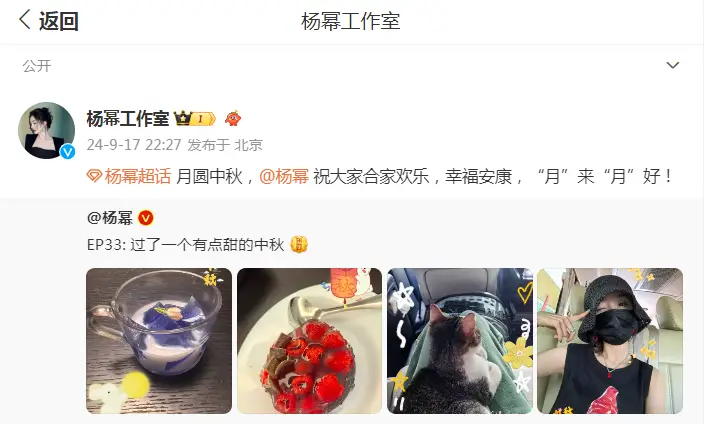 楊冪中秋曬美照,對鏡wink甜美可愛中秋佳節(jié),月滿人團圓,9月17日這個傳統(tǒng)而溫馨的節(jié)日里,不僅家家戶戶洋溢著歡聲笑語,娛樂圈的明星們也用自己的方式傳遞著節(jié)日的喜悅。在眾多溫馨的家庭合影...