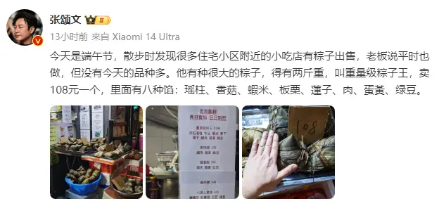 張頌文曬出八餡粽子王,售價(jià)108元